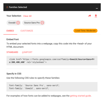<link href="https://fonts.googleapis.com/css?family=Oswald|Source+Sans+Pro:300,400,600" rel="stylesheet">