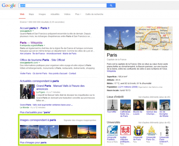 Cela touche bien sûr également les images que l’on trouvera dans la section « Images » des moteurs de recherche tel que Google ou Bing.